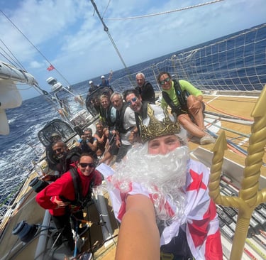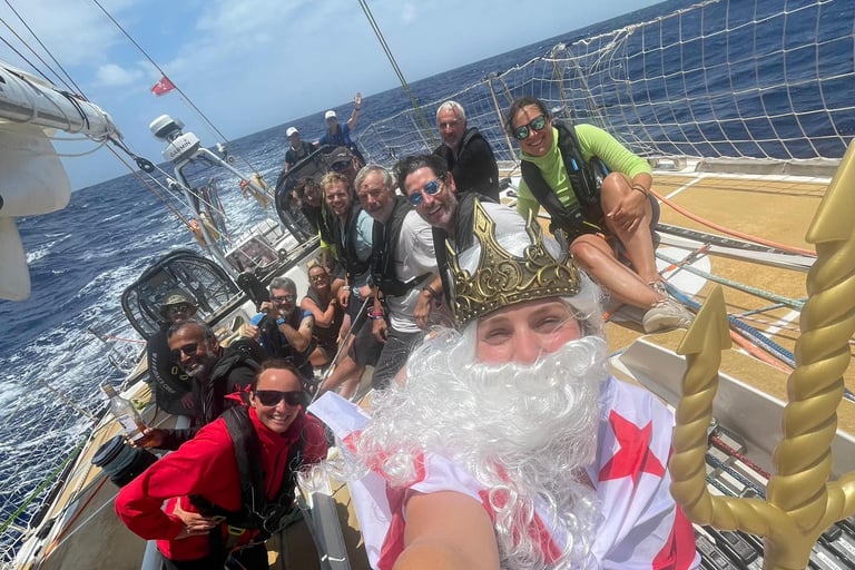 Skipper Ella Hebron and the crew after crossing the equator